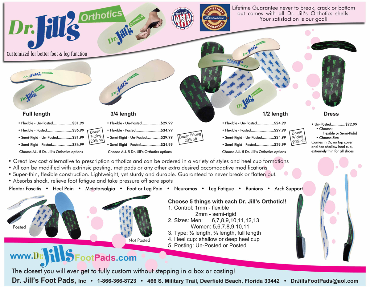 Dr. Jill’s Foot Pads, Inc • 384 S. Military Trail, Deerfield Beach, FL 33442 • 1-866-FOOTPAD